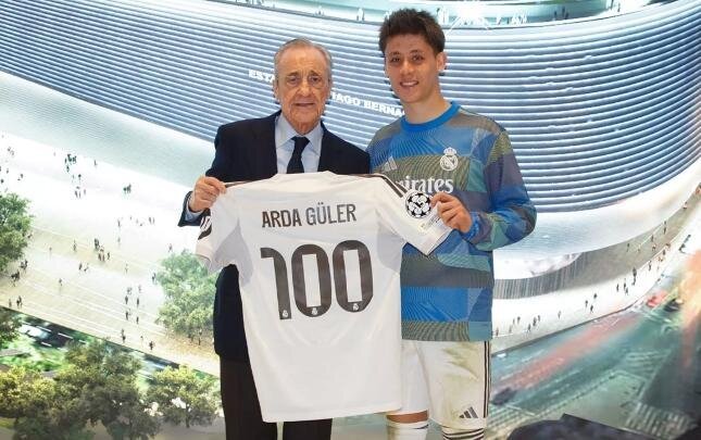 Klub prezidenti Florentino Peres oyundan əvvəl Ardaya üzərində 100 yazılmış xatirə formasını təqdim edib.